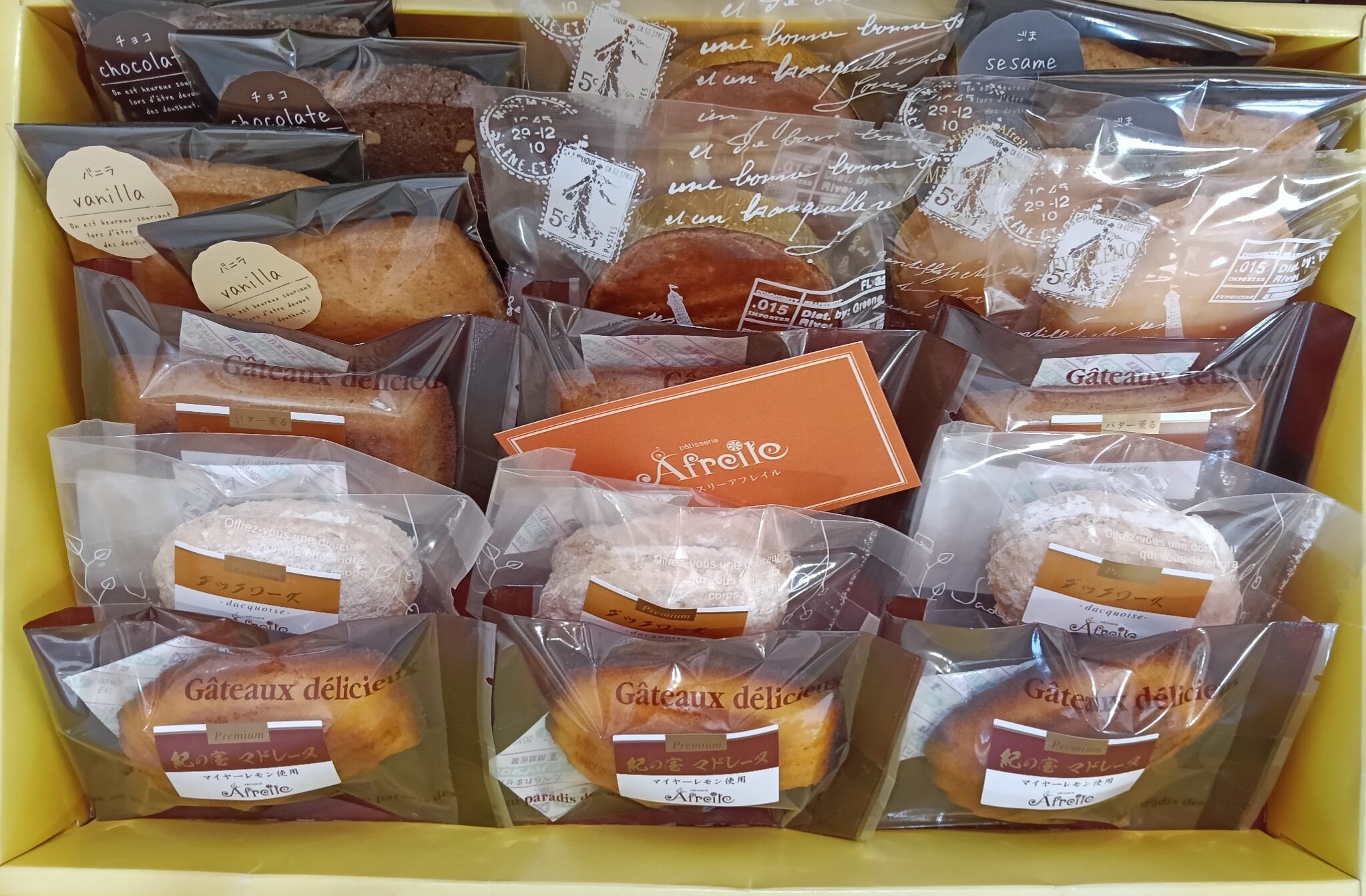 紀の宝マドレーヌ3個、ダックワーズ3個、フィナンシェ3個、